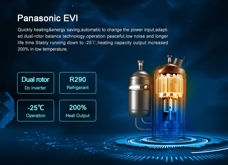 ✓ Compressor: Panasonic Full Inverter + EVI (Tipo duplo rotor)