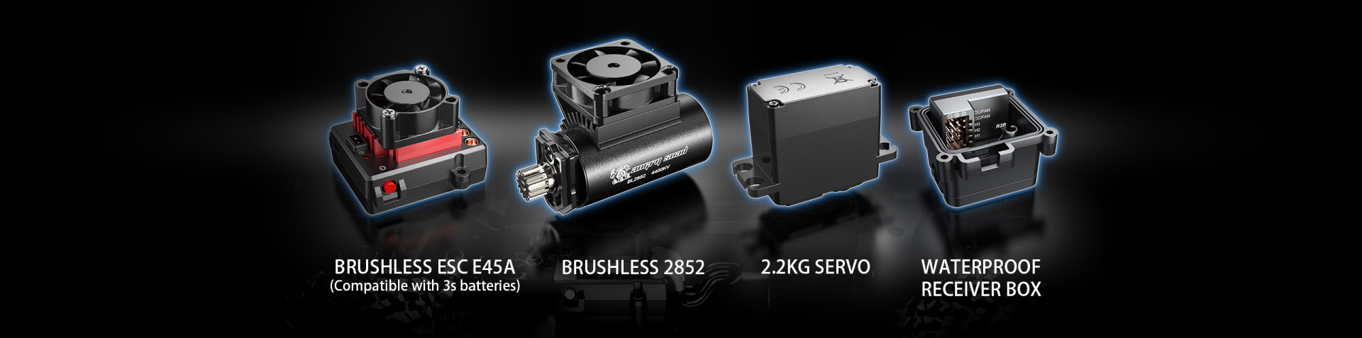 3. Receptor independente, motor com ventilador sem escovas de 45A independente (compatível com a bateria 3S)