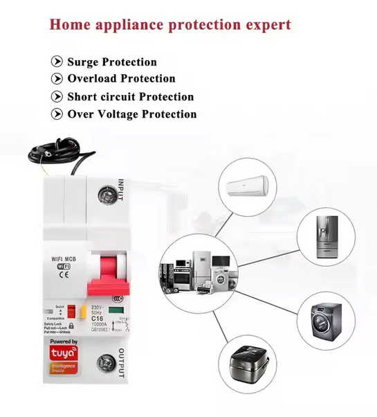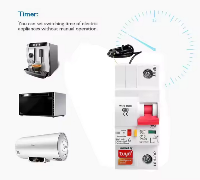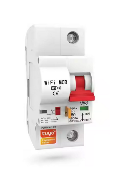 Disjuntor 1P SCB01 Smart Tuya Wifi 1-63 amperes ajustável por telémovel com duas antenas.