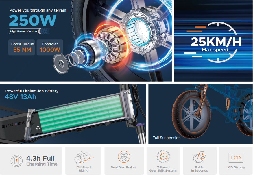 Bicicleta elétrica ENGWE Engine X 250W 100 km Alcance Máximo. Velocidade Máxima 25 km/h. Suspensão Total. Bicicleta Dobravel.