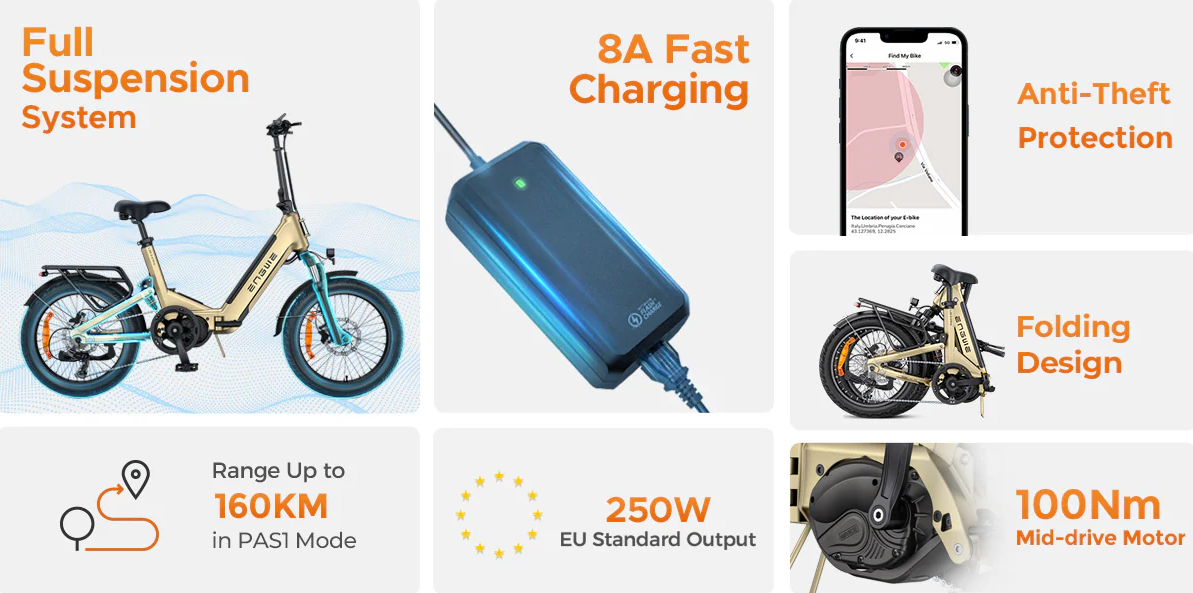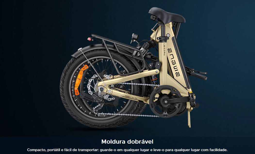 Engwe L20 3.0 Pro Motor central de 250 W e 100 Nm, suspensão total, bicicleta elétrica compacta.