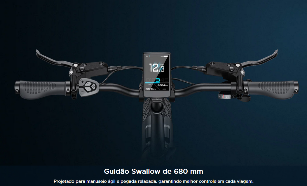Tela LCD colorida de 3,5" (velocidade, bateria, modo de assistência)