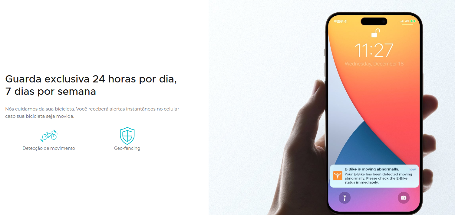 Material e Peso Quadro: Fibra de carbono (leve e resistente) Peso da bicicleta (com bateria): 19 kg (±3–5%) Peso bruto (incluindo embalagem): 28,6 kg