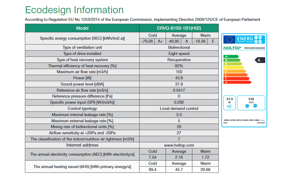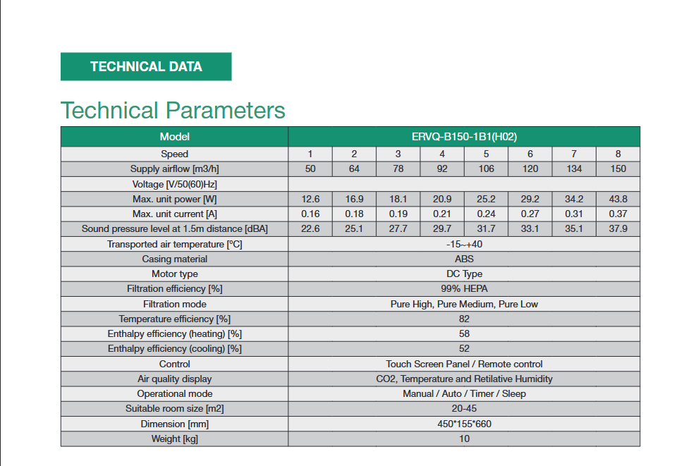 ERV Descentralizado ERVQ-B150-1A1F WIFI Tuya