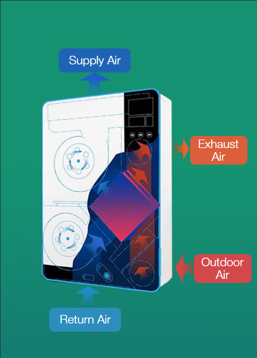 Renovação de ar com tranferência de calor.