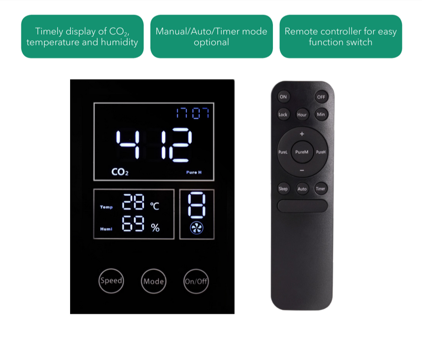 Monitorização de humidade relativa, temperatura e niveis de CO2. ( Também disponivel com sensor pm2.5 )